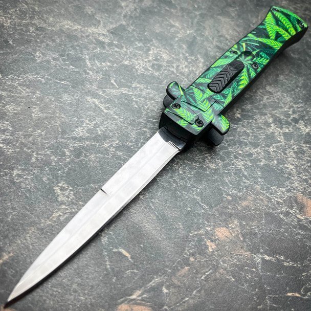 Get the best of both worlds with the Stiletto OTF automatic. This knife brilliantly combines the classic style of an Italian stiletto and the tactical speed of an OTF. A front-loading thumb slide fires and retracts the blade with smooth automatic precision. Add a unique design to your collection with the 9″ Stiletto OTF Auto.